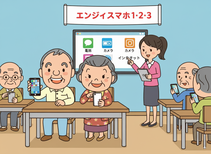 テキスト「60代からのはじめてのスマホ」に沿って、スマホの基本操作、スマホでやりたい事、LINE操作、スマホアプリの習得、困ったときのトラブル対策を勉強しています。高齢者の方が覚えられまで、何回も何回も復習して勉強を進めています。